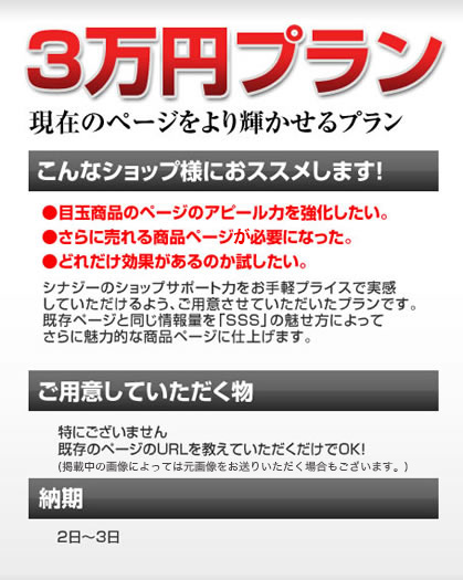 やりたいことに合わせて、いくつかのプランをご用意していますのでお好きなもので「商品ページ」をグレードアップしてください。